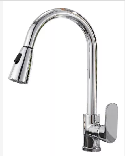 Grifería Lavaplatos De Lujo Alta Base Conica Mezclado Rociador Extraíble PLATEADO